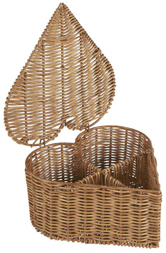 Scatola a forma di cuore in rattan e metallo con 4 scomparti 25x12x25 cm