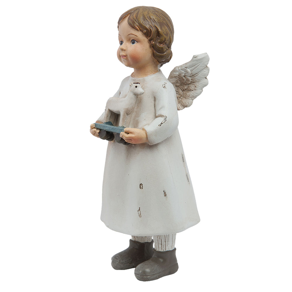 Questo tenero angioletto vintage, realizzato in poliresina, cattura l’innocenza con il suo delicato volto e il giocattolo tra le mani. Con dimensioni compatte di 14x6x5 cm, è un elemento decorativo perfetto per portare un tocco di dolcezza e spiritualità in ogni ambiente della casa. Ideale per chi cerca un dettaglio raffinato e affettuoso per il proprio spazio, questo angelo si armonizza con qualsiasi stile d’arredamento.