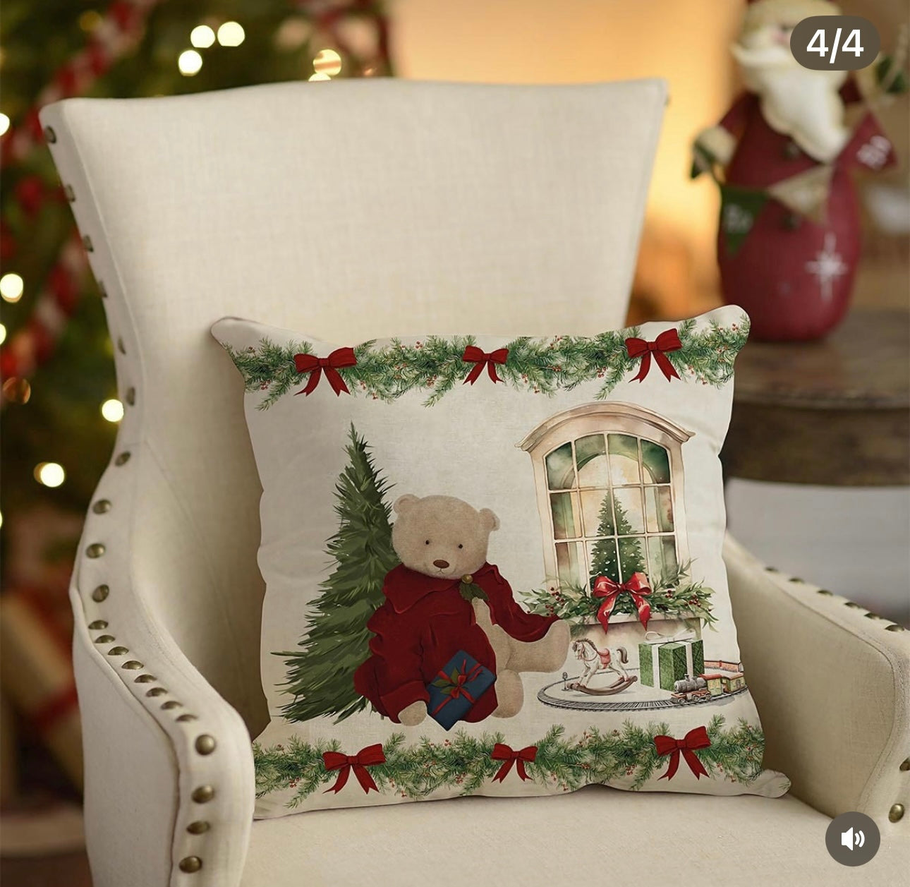 Elegante cuscino natalizio 50x50 cm, arricchito da una soffice imbottitura per un comfort superiore. Il delicato orsetto decorativo aggiunge un tocco raffinato e accogliente, perfetto per arricchire con classe l'atmosfera delle festività. Un elemento decorativo che unisce stile e calore, ideale per chi cerca dettagli esclusivi nella propria casa.
