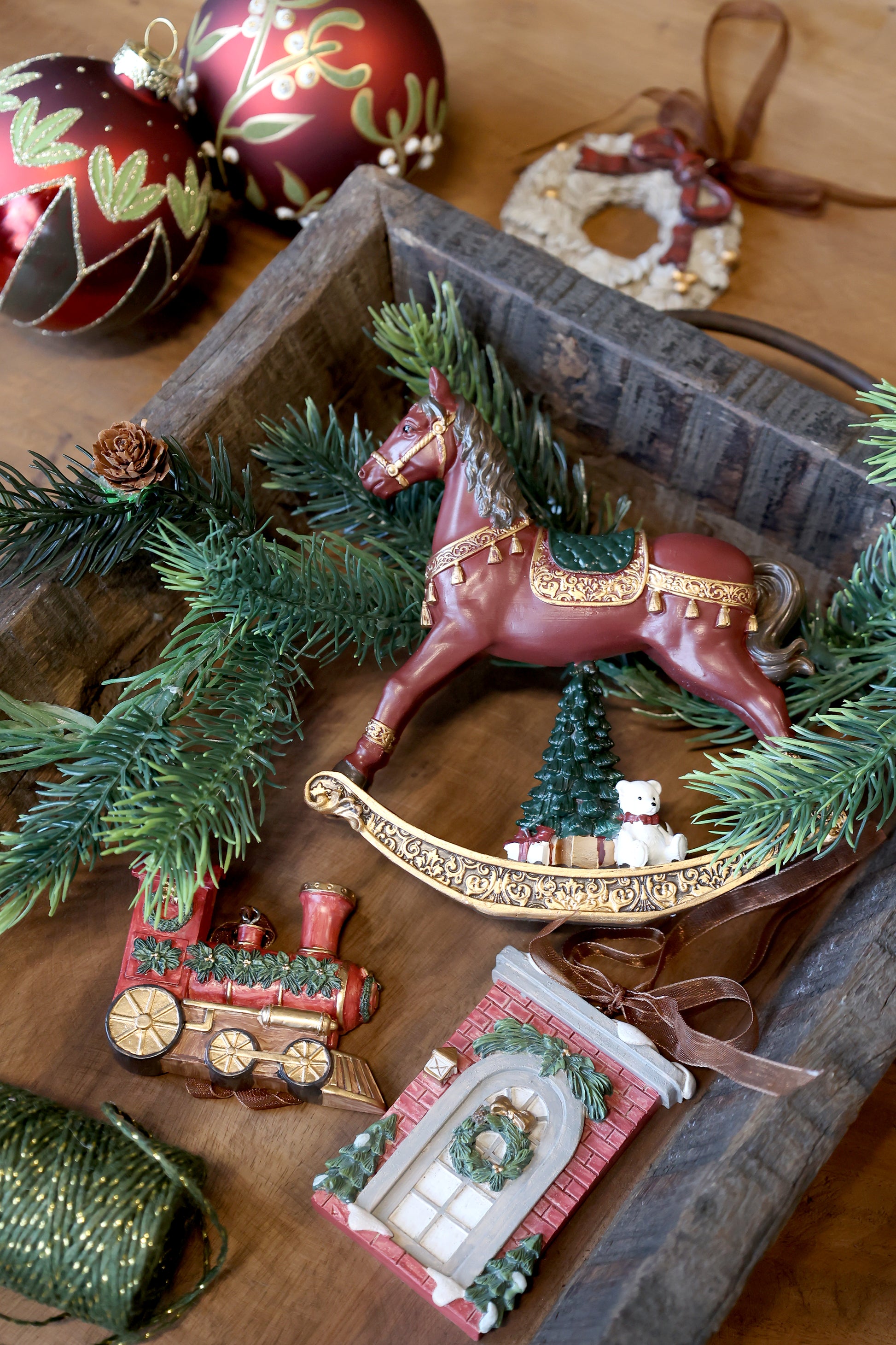 Il set include una raffinata ghirlanda con fiocco rosso, un delizioso trenino rosso e un portoncino d'ingresso che catturano l'essenza del Natale tradizionale. Realizzate con cura in poliresina, queste decorazioni aggiungono calore e carattere. Ideali per chi apprezza i dettagli e desidera un tocco natalizio sofisticato senza eccessi.