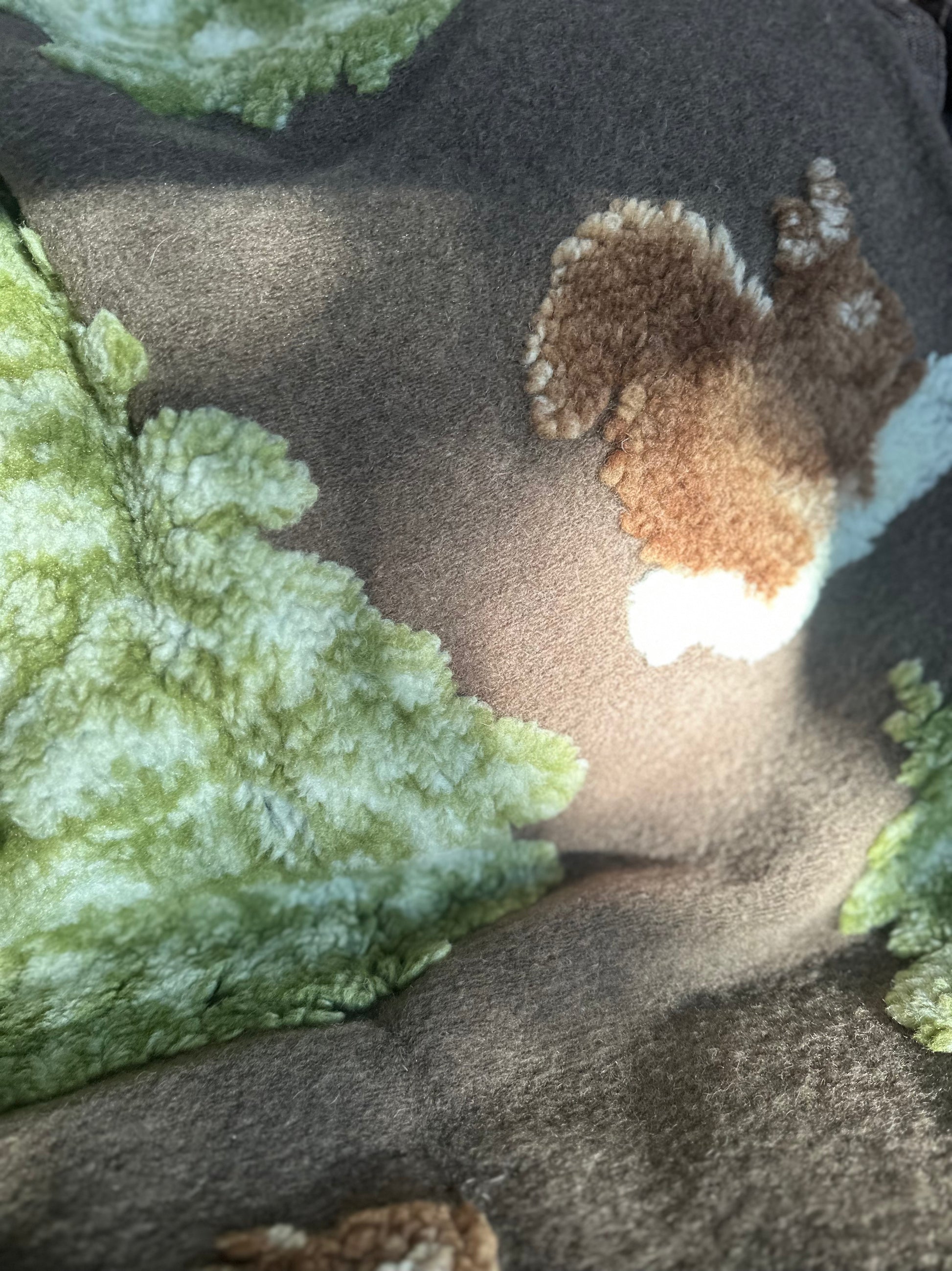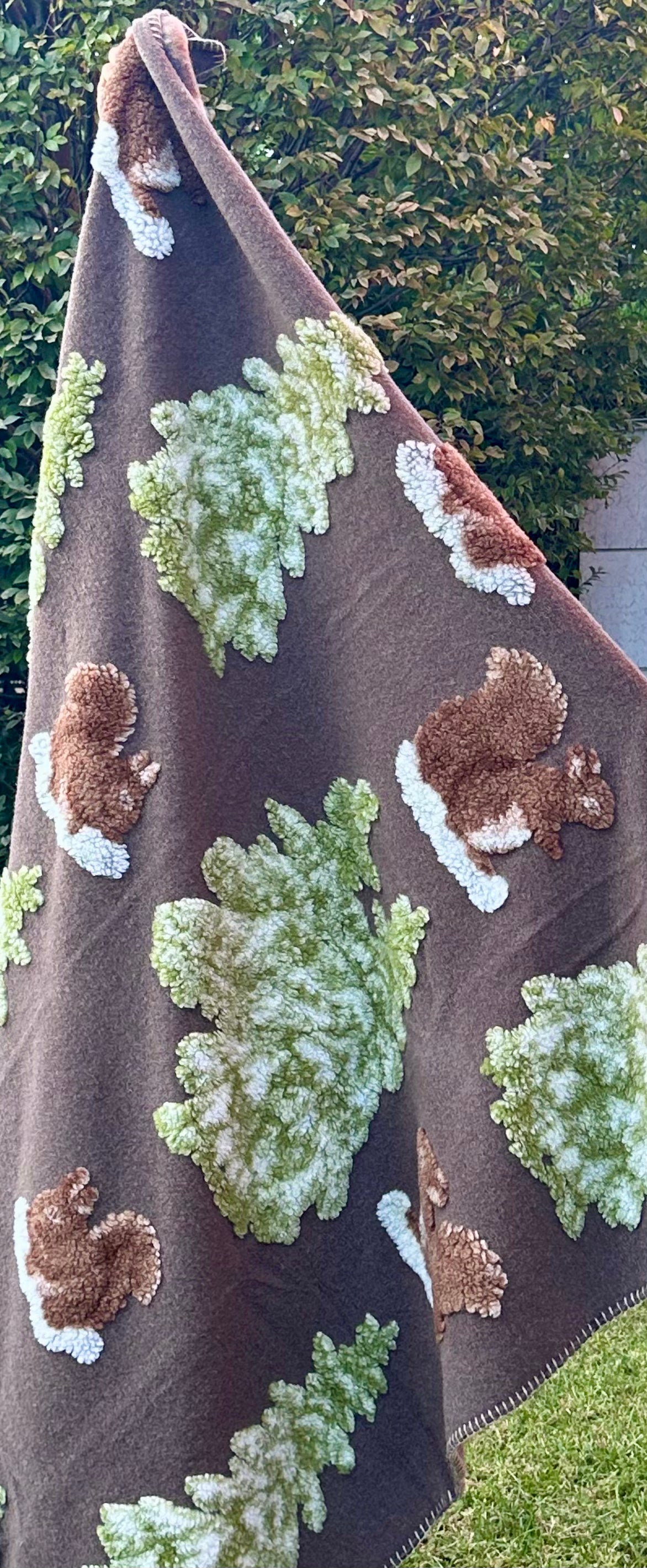 Plaid lana cotta marrone con scoiattoli e abeti 150x170 cm