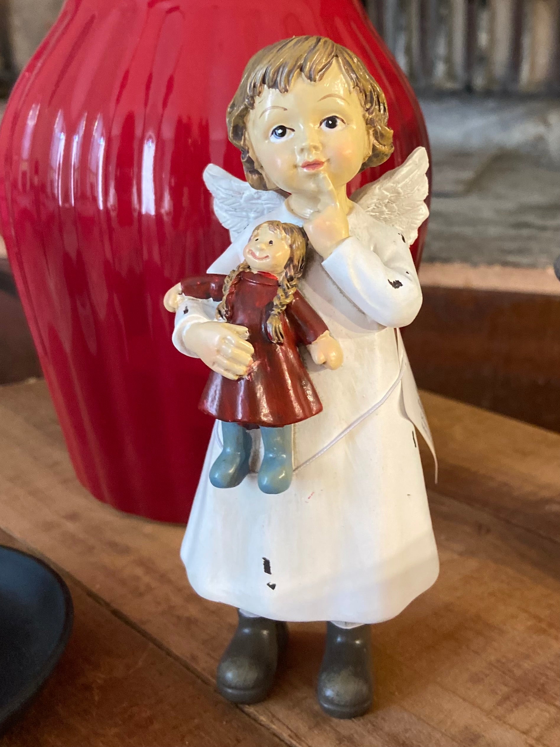 Aggiungi un tocco di magia alla tua decorazione natalizia con questa Statuetta angelo con bambola vintage. Realizzata in poliresina di alta qualità, è alta 14 cm e misura 6x5 cm. Una dolce aggiunta al tuo ambiente di festa!