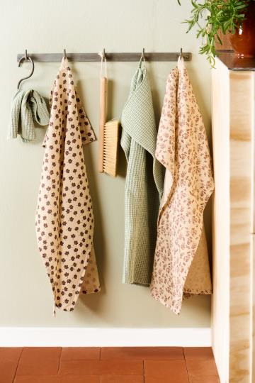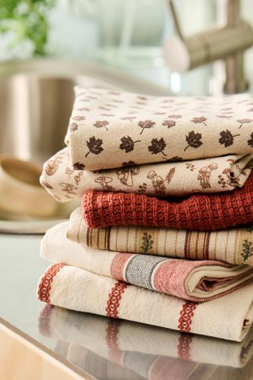 Il Strofinaccio Birk colore naturale con foglioline marroni porta in cucina un tocco di calore autunnale. La sua fettuccia lo rende pratico da appendere, mentre il design con dettagli marroni evoca la magia delle foglie cadenti. Perfetto per chi cerca un accessorio funzionale che aggiunga stile e accoglienza agli ambienti di casa.