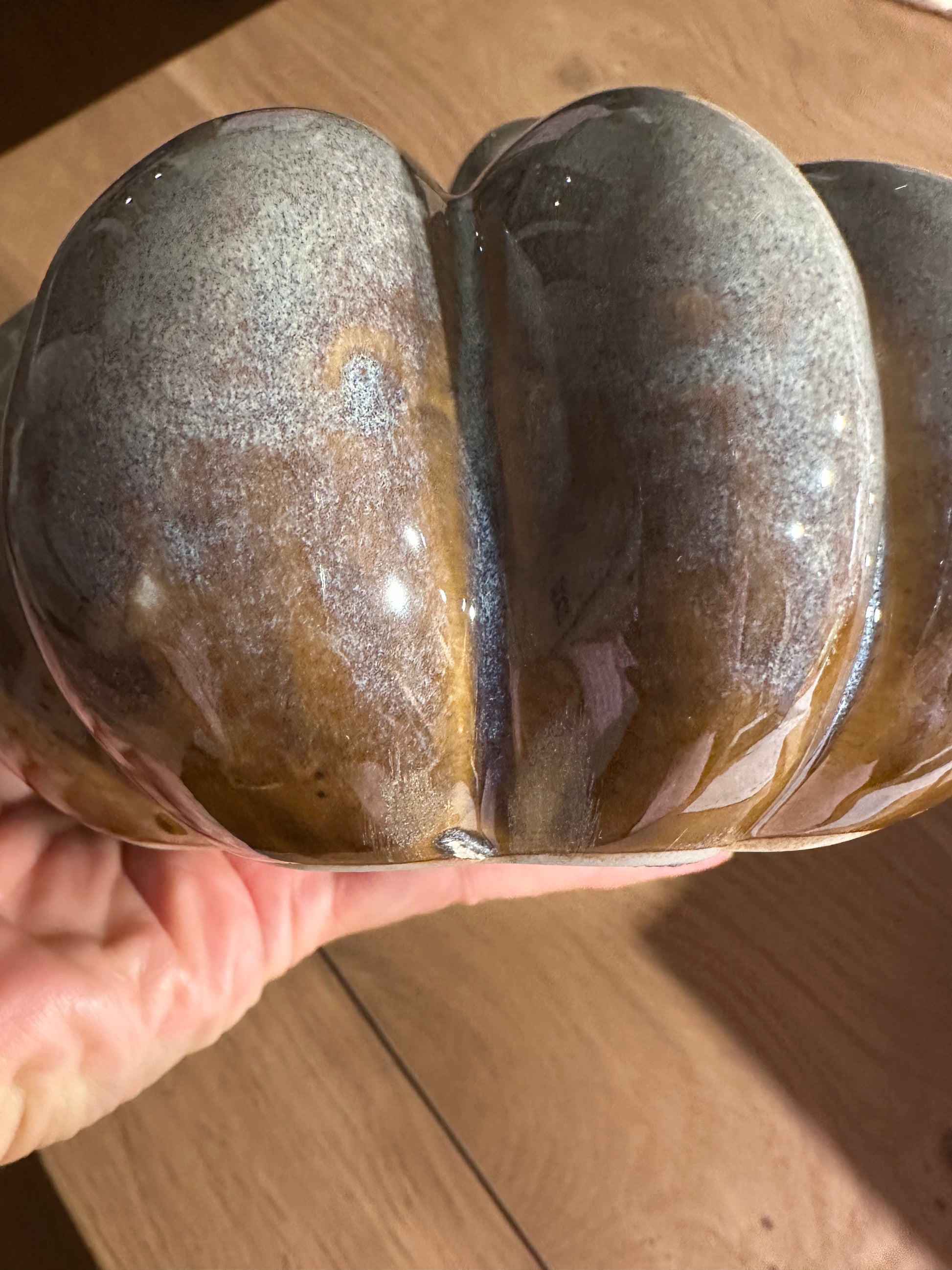 Zucca decorativa in ceramica color beige/arancio h 11 cm, ø 15 cm *con piccolo difetto*